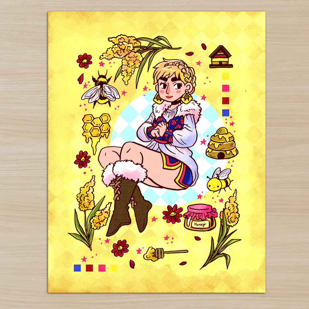 This artwork is printed full color on high quality linen paper to bring out the textures and vibrancies in the colors.