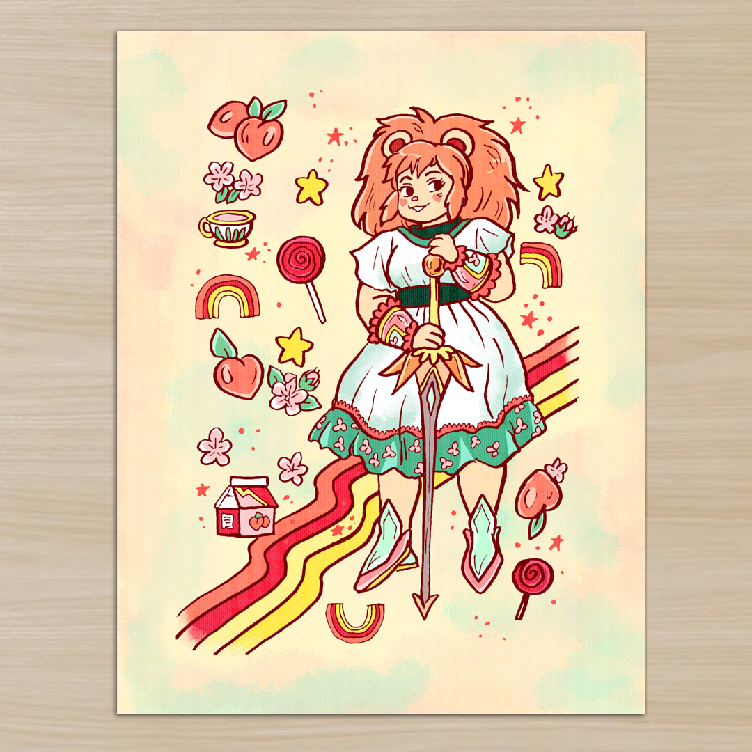 This artwork is printed full color on high quality linen paper to bring out the textures and vibrancies in the colors.