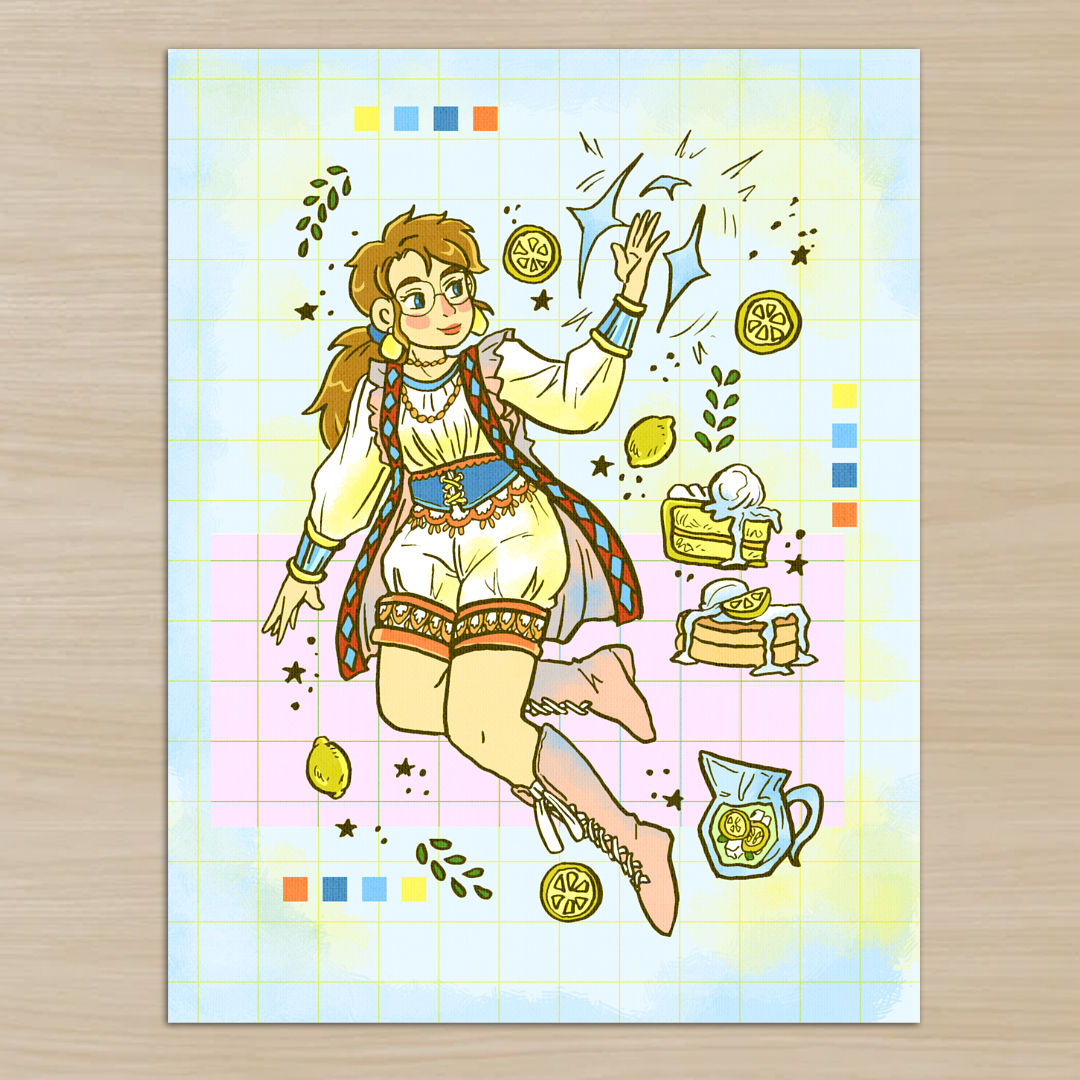 This artwork is printed full color on high quality linen paper to bring out the textures and vibrancies in the colors.